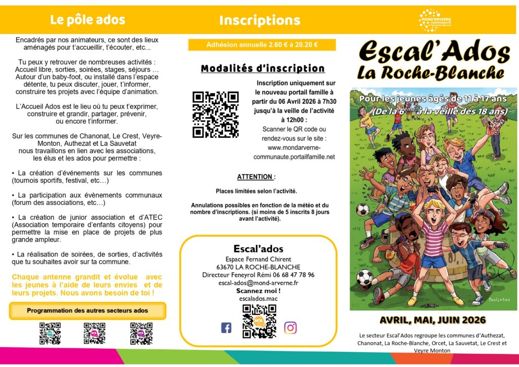 Vous trouverez les plaquettes d’Orcet et de La Roche Blanche avec les activités des mois d’avril, mai et juin.