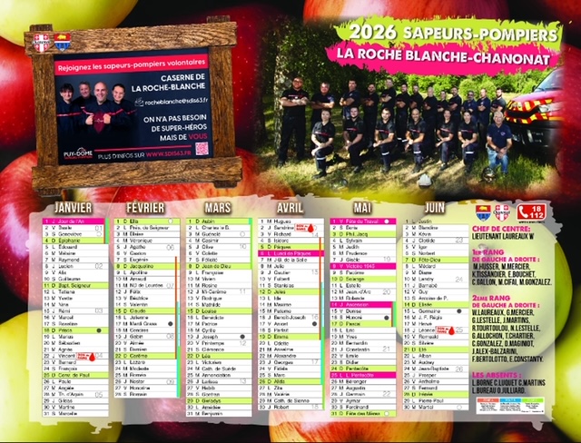 Événement marquant de chaque fin d’année la tournée annuelle des calendriers des sapeurs-pompiers volontaires de La Roche Blanche – Chanonat s’étendra des vacances de la Toussaint jusqu’à début d’année 2026.