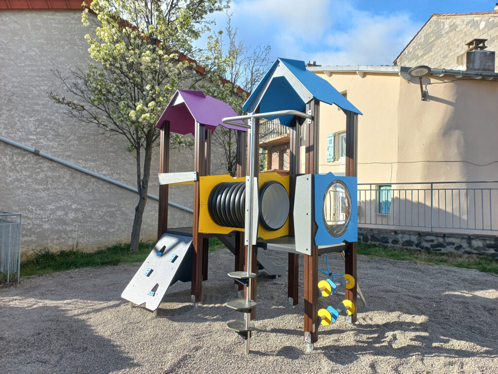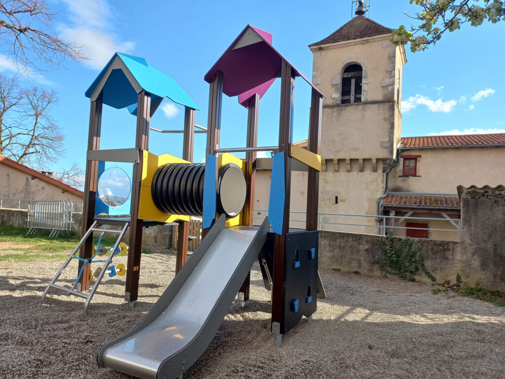 Ce nouvel aménagement, spécialement pensé pour les enfants de 3 à 10 ans, a été entièrement installé par les agents des services techniques de la commune. Conçu sous la forme d’un château, il vise à stimuler l’imagination et à encourager le jeu en plein air. Il comprend plusieurs éléments : deux tours aux couleurs vives, des structures pour grimper, ainsi qu’un toboggan. Les matériaux utilisés sont solides et conformes aux normes de sécurité en vigueur, garantissant la sécurité des enfants pendant leurs aventures.